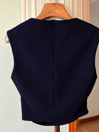 لباس علوي نسائية بدون أكمام وبسوستة من الخلف بخصر مطوي باللون الأزرق الداكن