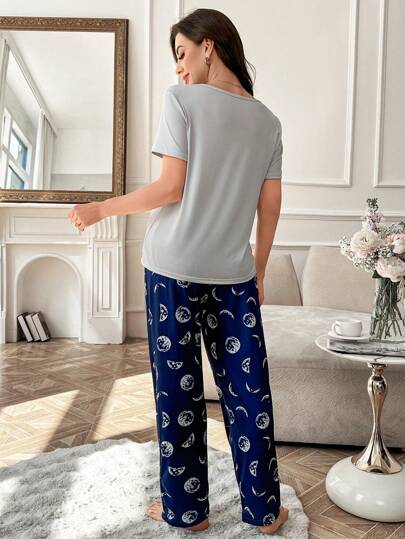 مجموعة بجامة للنساء بأكمام قصيرة وبنطال طويل مطبوعة برسومات الكواكب