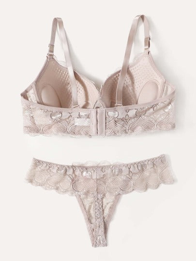 مجموعة برا وبانتي سروال دانتيل زهري بدون حشوة