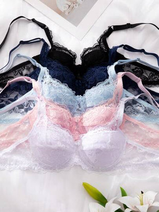مجموعة حمالات صدر من الدانتيل بلون سادة للنساء مكونة من قطع 5