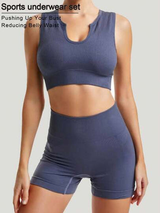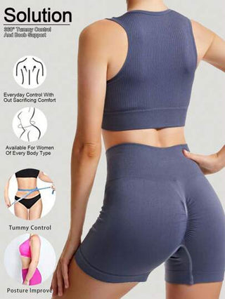 مجموعة رياضية للنساء من صدرية رياضية بحمالات مائلة من دون انفصام، قاعدة إسفنجية قابلة للإزالة، تصميم مثير للأرداف، شورت رياضي بخصر عالي، طقم بأعلى خزان للتدريبات الرياضية