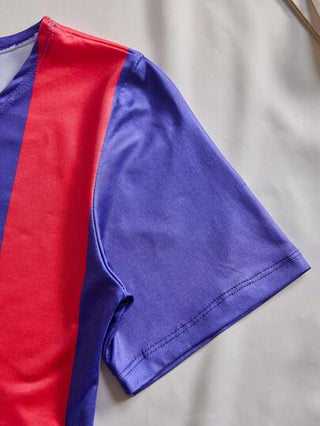 مجموعة زي فتيات كرة القدم ذات الألوان المتباينة المثيرة للنساء في مهرجان الموسيقى: ملابس علوية قصيرة الأكمام بياقة مدورة + سروال مثلثي الشكل
