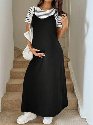 مجموعة فستان جيرسيه وقميص بقبة مستديرة ذو أكمام قصيرة 2 قطعة مخطط أثناء الحمل ، صيفي