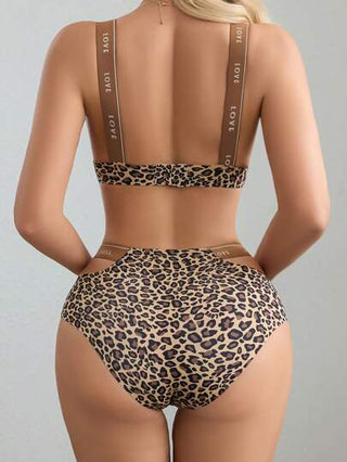 مجموعة قطعتين من حمالة نسائية بطبعة نمر حارة وحرف مطبوع، بدون حلقة معدنية، ملابس داخلية مخرمة بشكل مثلث