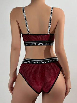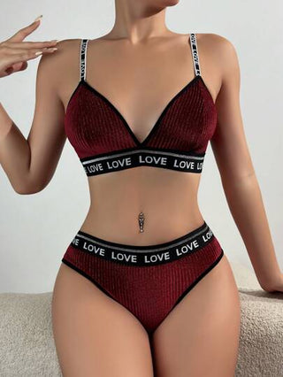 مجموعة ملابس داخلية من القطيفة مكونة من 2 قطعة، بنقشة شعار ورباطات على الحمالة، سلتية وتنفس مناسبة للشتاء