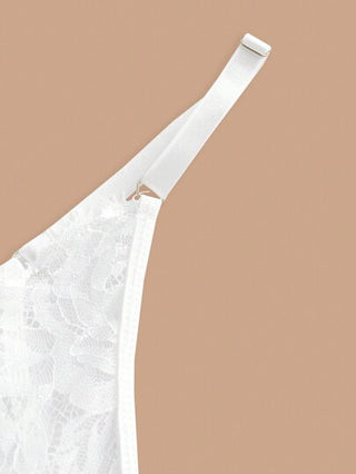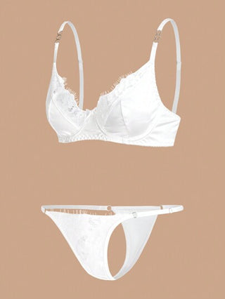 مجموعة ملابس داخلية من حمالة صدر وسروال بخصر أمامي مزخرف بالدانتيل البارز، مجموعة ملابس داخلية بيضاء ، مجموعة ملابس داخلية مثيرة للنساء