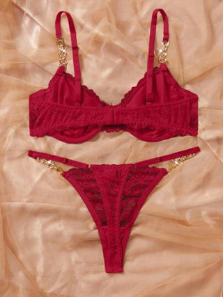 مجموعة ملابس داخلية نسائية 2 قطعة، مكونة من سلسلة للحلي ذات زخرفة الدانتيل، وسوتيان ذو أسلاك ولبس داخلي سلسلة