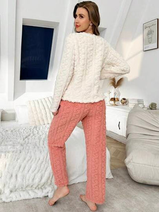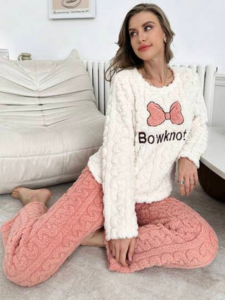 مجموعة ملابس نوم للسيدات مزينة بعقدة ناعمة وجذابة من قماش المخمل للخريف والشتاء