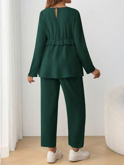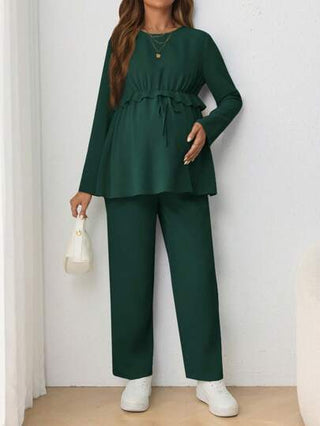 مجموعة من قميصين للحمل، قصة عنق دائري مريح، طويل الأكمام، قابل للتعديل في الخصر