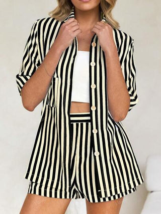 مجموعة من قميص ذو شريطية وشورت للنساء قطعتان