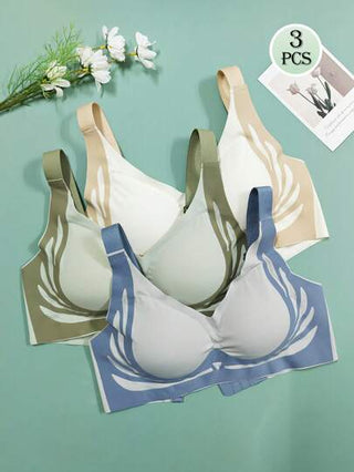 مجموعة من 3 حمالات صدر رياضية لا تترك آثارا، لاسلكية ، للرفع والدعم للنساء ، بطانة قابلة للتنفس وحشوة قابلة للإزالة ، ألوان متباينة
