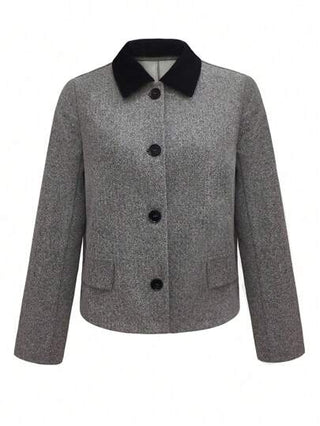 معطف متوسط الارتفاع بياقة واقفة مقسم إلى ألوان مختلفة، للخريف والشتاء