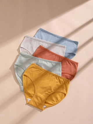 ملابس داخلية مريحة عالية الخصر بتصميم مثلث، خمس قطع موحد اللون قابلة للتنفس
