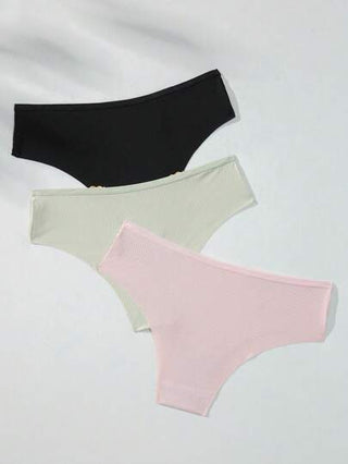ملابس داخلية نسائية مثلثة مجوفة بزخرفة على شكل قلب مع قوس (مجموعة من 3)