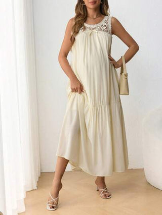 ملابس نسائية عارضة للحوامل غير رسمية للشاطئ، فستان حمل طويل مفرغ من الدانتيل