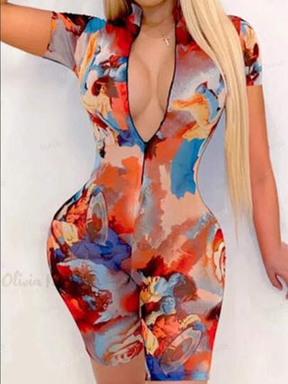 نسائي قفطان مطبوع محبوك عصري، ضيق مع أكمام قصيرة
