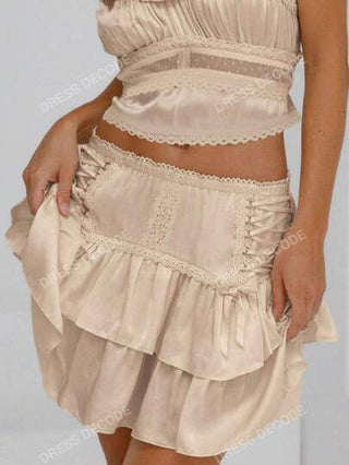 تنورة بطبقات مكشكشة ذات ربطة جانبية بالوردي والزهور لفصل الصيف