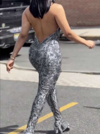 جمبسوت واسعة ضيقة مطبوعة بنمط نمر مع سحاب ومنسوجات شبكية مفتوحة وجذابة لفصل الصيف