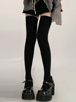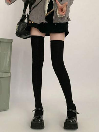 جوارب فوق الركبة طويلة ذات لون أحادي دافئة للخريف/الشتاء