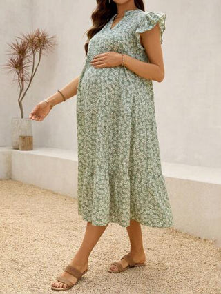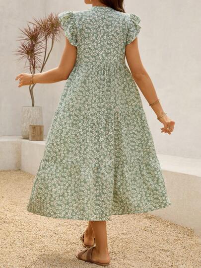 فستان حمل كاجوال قصير الأكمام بياقة مخدود ومطبوع بطراز أزهار متناثرة، مناسب للربيع