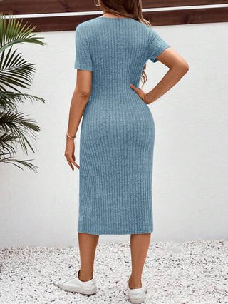 فستان حمل كاجوال متوسط الطول ضيق الخصر بياقة مستديرة