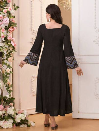 فستان لموضة الحمل بأكمام واسعة مطبوع وتصميم وصل