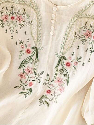 قميص نسائي عاري الرقبة بأسلوب فضفاض وعتيق مطرز، خفيف الوزن لربيع/صيف