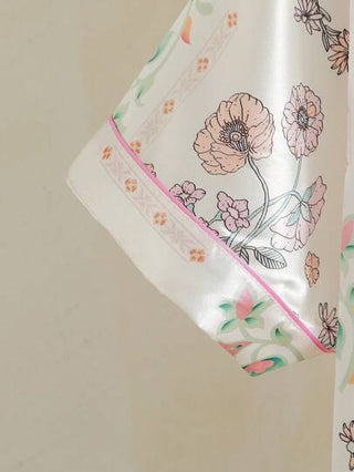 مجموعة بيجامة نسائية مطبوعة بالزهور مكونة من ملابس علوية أكمام قصيرة وبنطال طويل، من قماش الساتان