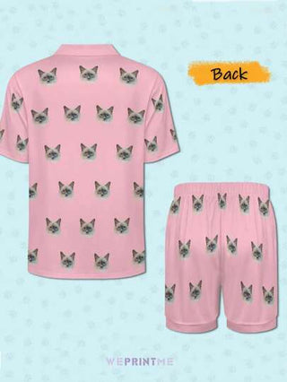 1 بدلة نوم مكونة من قميص كم قصير ذو طباعة وجه الحيوان الأليف الشخصي وشورت، ياقة غير رسمية مريحة للنساء