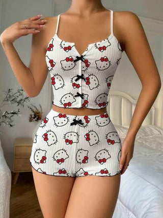1 بيجامة صيفية رأس القطة هيلو كيتي ملابس علوية ملابس نوم للنساء، بجامة هيلو كيتي من Sanrio، بلوزة
