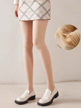 1 قطعة جوارب لباس داخلي بحجم كبير بلون الجلد/أسود مبطن حراري ، سراويل طويلة بدون أقدام معتمة للنساء، لبس شتوي دافئ، لباس نسائي ذو شفافية شبه شفافة