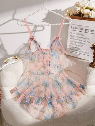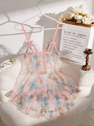 1 قطعة فستان ملابس داخلية شفاف مطبوع للنساء