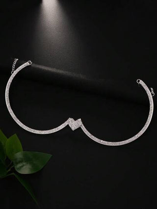 1 قطعة قلادة سلسلة صدرية بشكل قلب مطرزة كاملة بالبلورات الفضية، إكسسوار ملابس داخلية و سلسلة للجسم للنساء، إكسسوار مجوهرات للنوادي