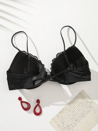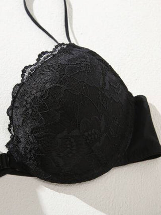 1 قطعة من ملابس الداخلية ذات الدانتيل الأسود الخلفية، بدون ظهر، مزود بإبزيم أمامي للمنع التساقط وتعزيز الصدر الصغير وبمفعول رفع وتعديل الجانب