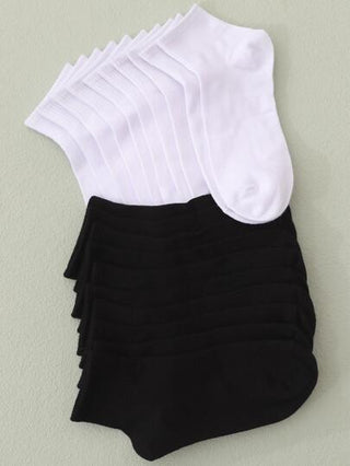 10 أزواج جوارب الكاحل للنساء باللون الأبيض والأسود، جوارب طاقم لون سادة قابلة للتنفس مناسبة للربيع والصيف