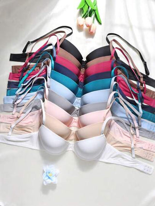 10 قطعة ملابس داخلية آنسة وحدة اللون مع ركيزة دفع لأعلى، مجموعة ملابس داخلية مبطنة بسيطة ومريحة