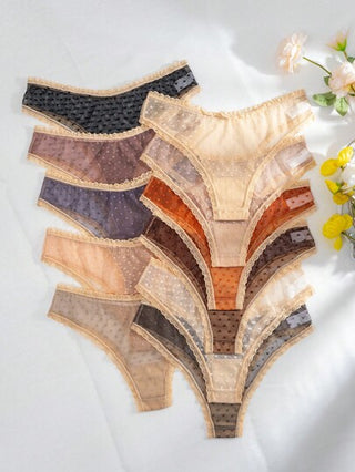 11 قطعة/عبوة من السراويل الداخلية ثلاثية الأشكال بشراشيب من الدانتيل والشبكة