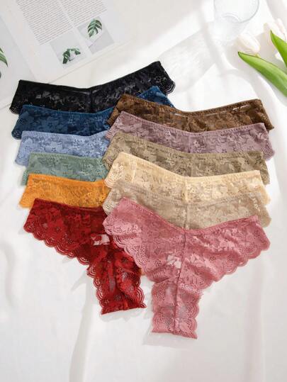 12 حبة / عبوة للسيدات, ملابس داخلية لاسدا مثلث الألوان الصلبة بأطراف من الدانتيل