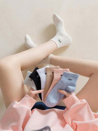 1/7 زوج (توصيل عشوائي) من جوارب نساء ذات طبعة حرفية بألوان الحلوى قصيرة وكاحل، عصرية ومتعددة الاستخدامات للارتداء اليومي