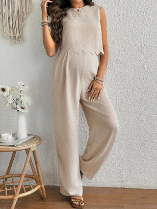 2 قطعة بدلة حمل، توب كتان بدون أكمام و شورت ذو ربطة خلفية، طراز يومي بسيط، صيفي
