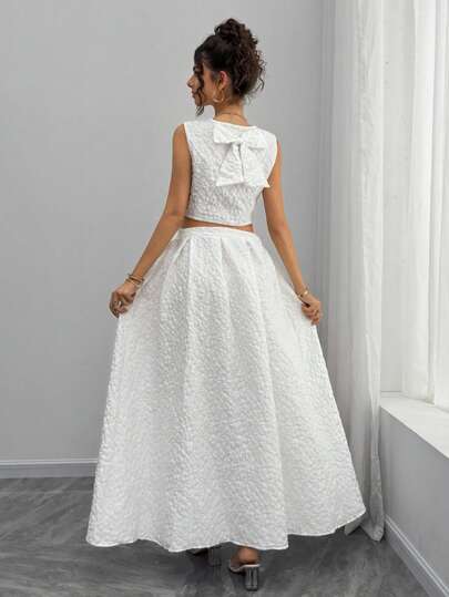 2 قطعة مجموعة حمل: ملابس علوية عنق دائري بلا أكمام واسعة و تنورة بخصر قابل للتعديل، أنيقة