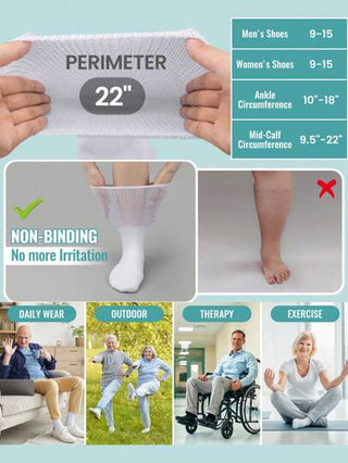 3 أزواج من الجوارب متوسطة الطول الرخوة مقاس كبير، سميكة الأرضية والفضفاضة الملاءمة، مناسبة للرجال والنساء ذوي أقدام متورمة أو إصابات القدم