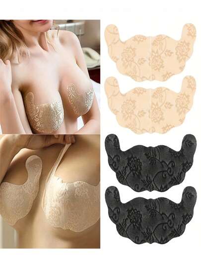 3 أزواج من شرائط الصدرية الشفافة من الدانتيل - رفع الصدر وداعم ورفع زيادة الإبطاء، غطاء للحلمات لاصق، مناسب لملابس السباحة وفستان الزفاف والملابس الداخلية