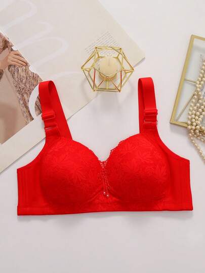 3 حبات/ مجموعة صدريات نسائية لاسلكية بتأثير رفع القوام من القماش الدانتيل ذات اللون الصلب، للصدور الكبيرة، مضادة للترهل