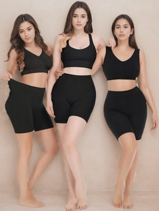 3 طقم سراويل داخلية لحماية البنات من الالتصاق تحت الفساتين، خصر عالي منع الاحتكاك حتى مقاسات كبيرة، سراويل داخلية ضيقة للرياضة والعمل لون أساسي سادة