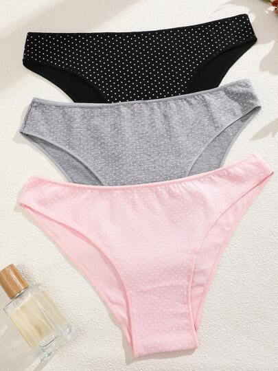 3 طقم سراويل داخلية ناعمة بخصر مرتفع مزينة برسومات الأشكال المنقطة للنساء