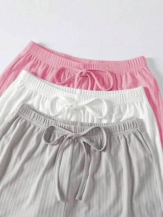 3 طقم نسائي من القمصان بدون أكمام مزين بدرزات الدانتيل مع بنطلون مجموعة راحة