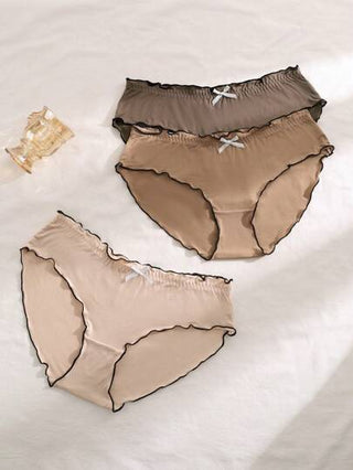 3 قطع/عبوة سراويل داخلية نسائية مريحة وقابلة للتنفس مع تريم منقوش