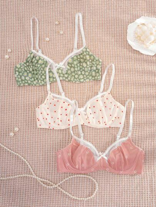 3 قطع حمالات صدر نسائية سلسة وللياقة مطبوعة بنقوش بنقوش وردية وبقلوب