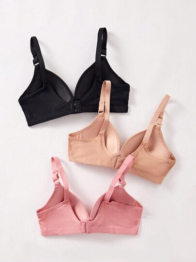 3 قطع للنساء سلكي مُريح وجيد التهوية، صدّارة قطعة صلبة ناعمة، ملابس داخلية